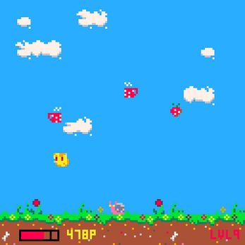 - Hunger Berserk: If the hunger grows over a threshold, the potato goes into a hungry frenzy, allowing it to devour all enemies and invulnerability at the cost of a quickly decreasing score.